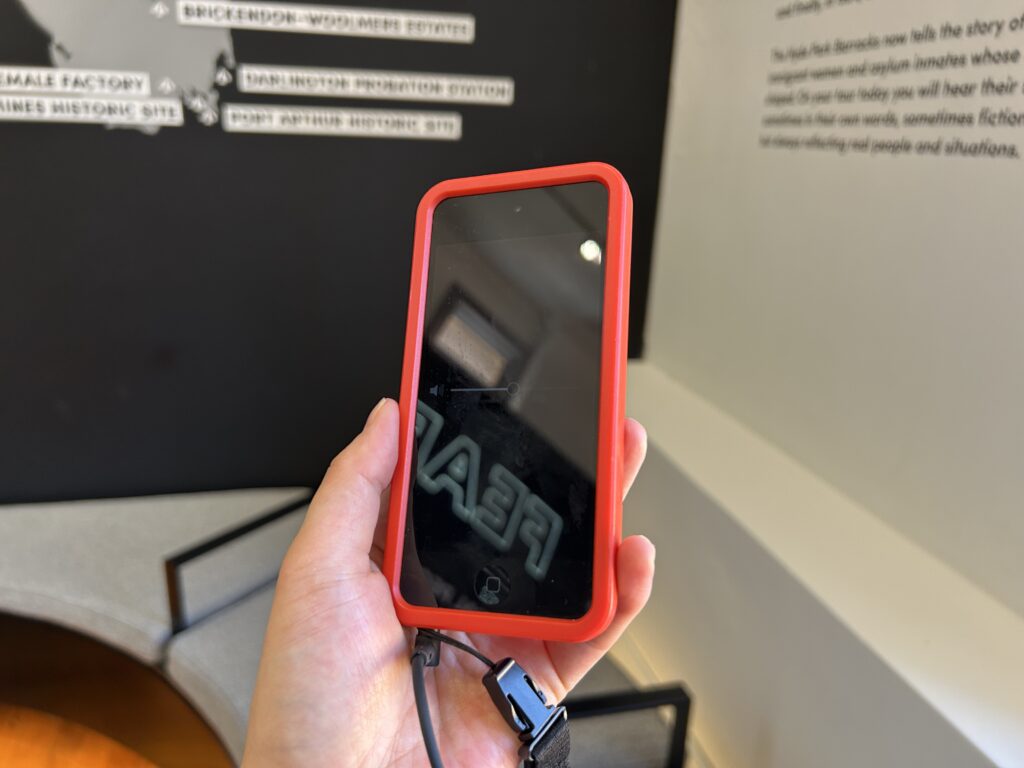 音声ガイドは、本体がスマートフォンのような形状でヘッドフォンが付属しています。本体は基本音量しか操作しません。施設内を見学していると天井に設置してあるセンサーに本体が反応して、その展示物に合ったガイダンスが自動で流れます