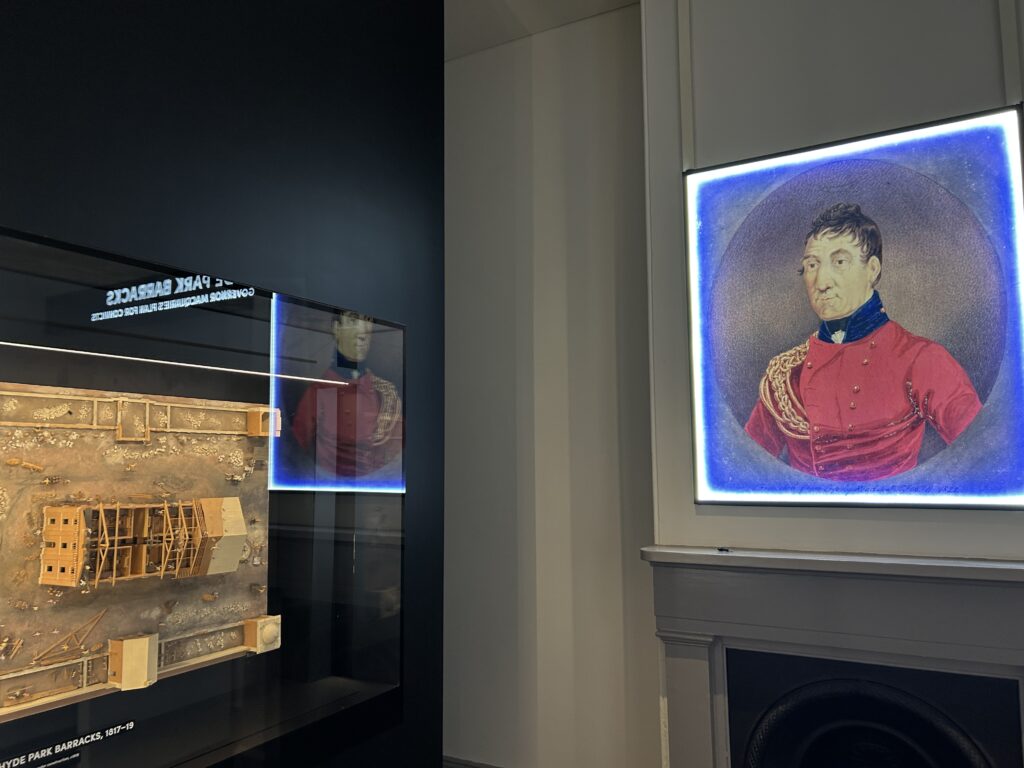 当時のオーストラリアでは、流刑に処された囚人たちを監督し労働の指示をする、主に軍から派遣されたイギリス人たちがピラミッドの頂点。ラックラン・マッコーリー総督は、ニューサウスウェールズ植民地総督として1810年から1821年の間指揮し、植民地の自由社会化に貢献しました。ハイドパーク・バラックスもマッコーリー総督の指示で建てられました。