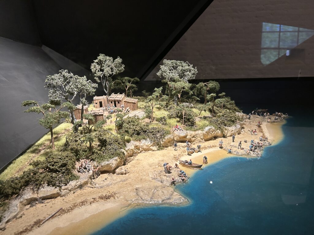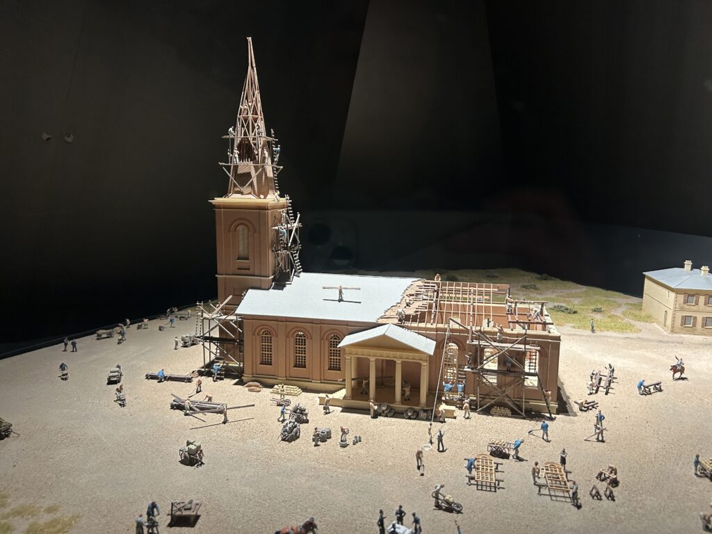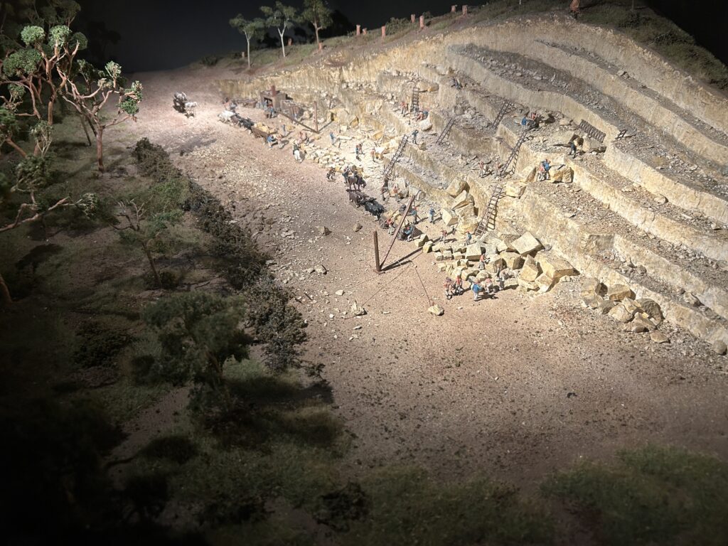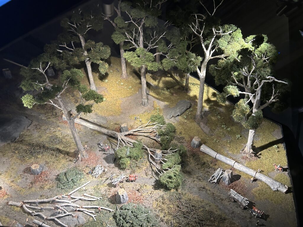 初期は建物を建てるための森林伐採や採石が大きな規模で行われていました。その様子を伝える精巧なジオラマが展示されています。